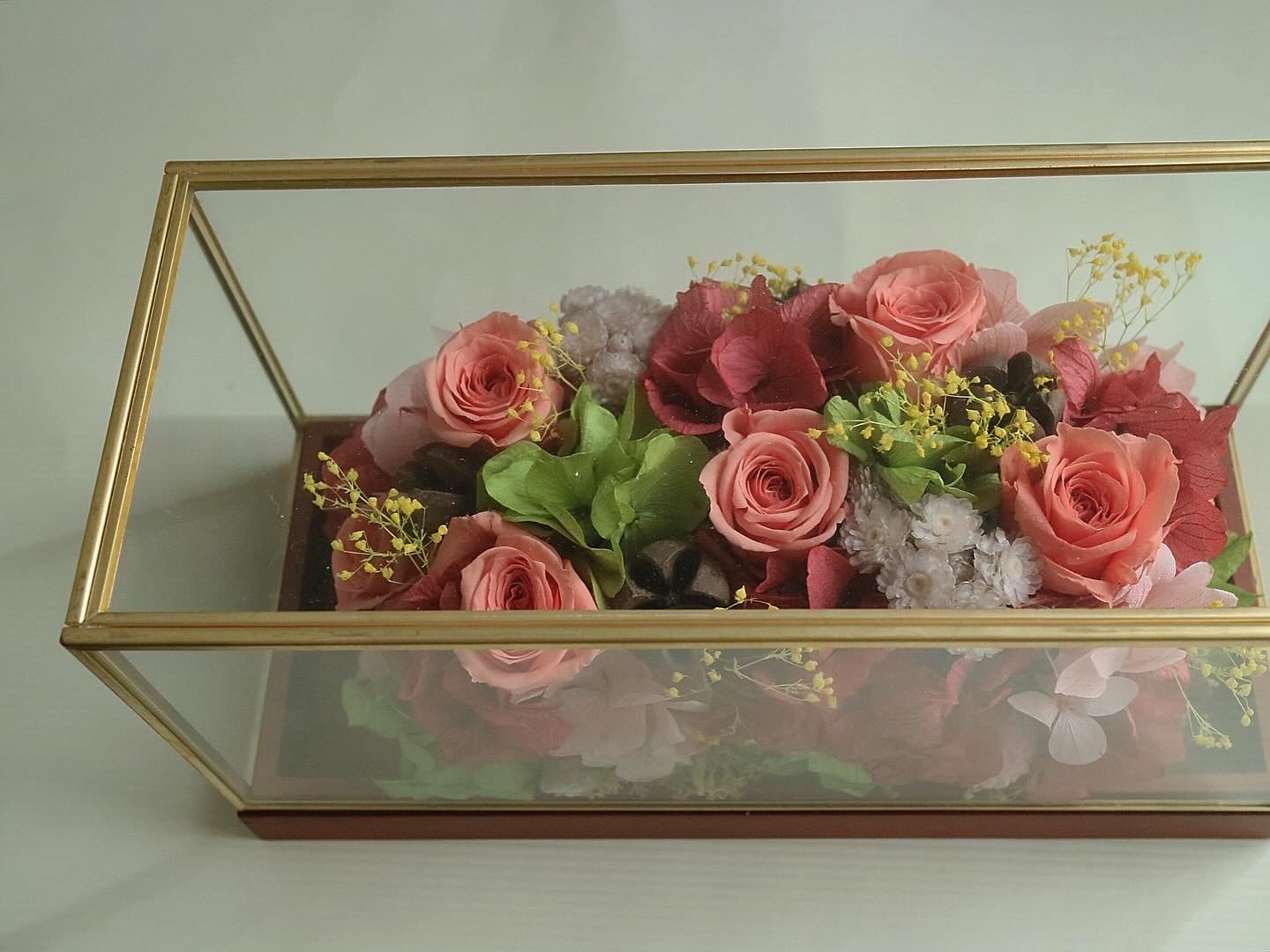 - 内容: 美しい色合いのプリザーブドフラワーを使用し、季節感あふれるアレンジメントに仕上げました。